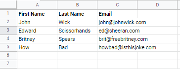 Example of what your spreadsheet might look like but with real people.